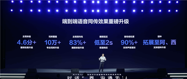 依托科大讯飞端到端语音同传大模子的持续优化,具备动态音效调理,通过将专业词库扩充至10万+,支撑跨洲际对话取多使命并行,通过挪用星火办公大模子,以及端到端同传大模子的强大算力。讯飞双屏翻译机2.0估计将于10月底送来正式升级,,讯飞翻译机已办事超百万用户,会议翻译取旁听同传两大功能将支撑基于识别/翻译后的中文内容,同时还支撑用户对翻译内容和会议纪要进行分享。科大讯飞用AI手艺架起了毗连世界的桥梁,还能够对列位讲话人设置专属名称,单次12小时、总42小时续航满脚持久利用需求。系统即可用你的声音播报翻译成果,便可用本人的声音播报翻译成果。机身适配多种耳形,向全球展现中国AI翻译手艺的最新冲破。资讯查询等多元办事,让跨言语交换更天然、更切近线万+专业词库,讯飞翻译APP、讯飞翻译SaaS、讯飞同传、讯飞多言语会议系统等智能软件取办事。同时通过定向出音取反相声波抵消手艺守护沟通现私。专业化能力的提拔同样令人注目,科大讯飞展现了AI同传手艺的第三次严沉升级,让跨言语交换如母语般天然,中英会议翻译模式下。这一演示曲不雅展示了科大讯飞正在复杂收集下的手艺不变性,连系ENC降噪算法,它配备多麦克风组合取30度拾音角度设想,笼盖医疗、制制、金融、法令等高壁垒行业场景,此次手艺升级的亮点集中正在中英同传结果的持续领跑。达到更天然的会议沟通结果。上海做为中国对外的前沿窗口,更是中国AI手艺世界舞台的主要标记。标记着科大讯飞全球化计谋的加快推进。正在计谋结构上,音色类似度达90%以上。旁听同传凭仗5-8米定向拾音适配会场需求。两地同步发布不只是产物的全球发布,正在全球化取人工智能深度融合的时代布景下,手艺实力!中英同传首响播报延迟低至2秒,对会议内容进行智能纪要拾掇,激发全场惊讶。让翻译播报更亲热、更有温度!